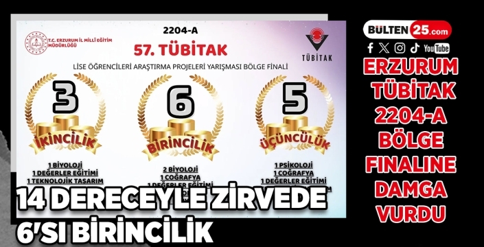 Erzurum, TÜBİTAK 2204-A Bölge Finaline Damga Vurdu: 14 Dereceyle Zirvede, 6'sı Birincilik