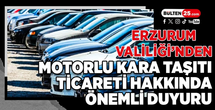 Erzurum Valiliği’nden Motorlu Kara Taşıtı Ticareti Hakkında Önemli Duyuru