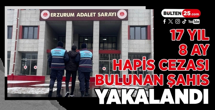 Yakalanan şahıs, adli işlemlerinin ardından tutuklanarak Erzurum E Tipi Kapalı Ceza İnfaz Kurumuna teslim edildi.