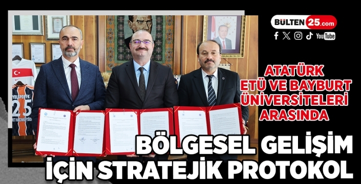 Atatürk Üniversitesi, Erzurum Teknik Üniversitesi ve Bayburt Üniversitesi arasında, Bölge Üniversiteleri Gelişim Araştırma ve İş Birliği Projesi (BÖGAP) kapsamında önemli bir iş birliği protokolü imzalandı. Atatürk Üniversitesi Rektörü Prof. Dr. Ahmet Hacımüftüoğlu’nun ev sahipliğinde gerçekleşen imza törenine ETÜ Rektörü Prof. Dr. Bülent Çakmak ve Bayburt Üniversitesi Rektörü Prof. Dr. Mutlu Türkmen katıldı.