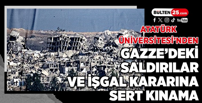 Atatürk Üniversitesi, Gazze’de devam eden saldırılar ve alınan işgal kararına karşı sert bir kınama mesajı yayımladı. Üniversite yönetimi, açıklamasında; insanlık onurunu zedeleyen, uluslararası hukuk ve temel insan haklarını hiçe sayan bu eylemlerin karşısında sessiz kalınamayacağını vurguladı.