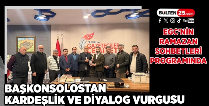 BÜLTEN25 / ERZURUM İran İslam Cumhuriyeti Erzurum Başkonsolosu Alibeman Eghbali Zarch, Erzurum Gazeteciler Cemiyeti’nin Ramazan sohbetlerinde iki ülke arasındaki tarihi bağlara ve şehir diplomasisinin önemine dikkat çekti. Cemiyet Başkanı Mehmet Musa Çakır ise diyalog ve karşılıklı anlayış vurgusu yaptı.