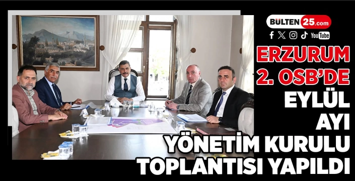 Erzurum Valisi Mustafa Çiftçi başkanlığında, 2. Organize Sanayi Bölgesi (OSB) Eylül Ayı Yönetim Kurulu Toplantısıgerçekleştirildi.