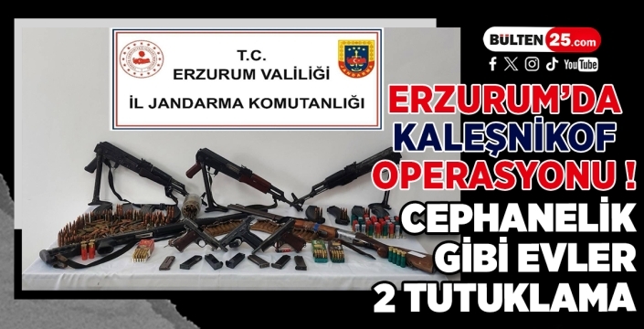Erzurum İl Jandarma Komutanlığı ekipleri, Karayazı ilçesinde düzenledikleri operasyonda çok sayıda silah, mühimmat ve suç unsuru ele geçirdi.
