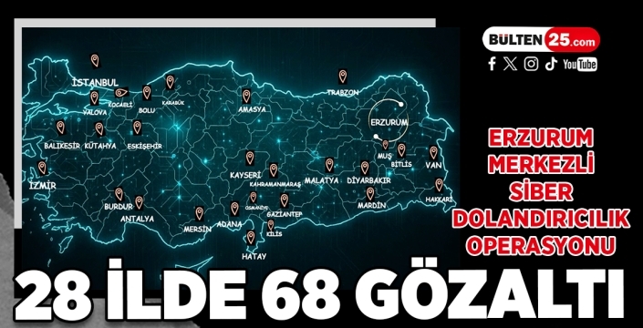 Bu kapsamda 9 Şubat 2026 tarihinde Erzurum merkezli olmak üzere 28 ilde eş zamanlı gerçekleştirilen operasyonda 68 şüpheli yakalandı.
