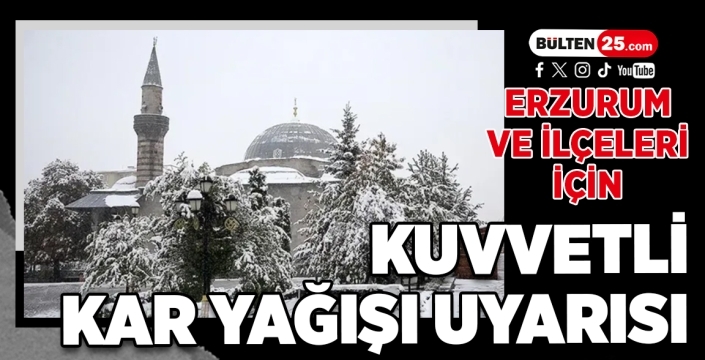 Özellikle Çarşamba günü öğle saatlerinden sonra, Erzurum’un güney ilçelerinde (Aşkale, Çat, Hınıs, Karayazı ve Karaçoban) kuvvetli kar yağışı (5-20 cm) görüleceği tahmin ediliyor.