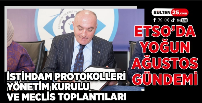 ETSO’nun Ağustos ayındaki çalışmaları, hem Erzurum’da nitelikli iş gücünün yetiştirilmesi hem de bölgenin ekonomik kalkınması açısından dikkat çekici gelişmelere sahne oldu. İmzalanan protokollerle gençlere istihdam imkânı sağlanırken, gerçekleştirilen toplantılarla da şehrin sanayi, ticaret ve yatırım gündemi detaylı şekilde ele alındı.