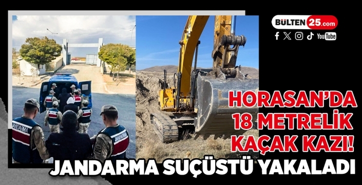 Horasan İlçe Jandarma Komutanlığı tarafından 6 Kasım 2025 günü gerçekleştirilen operasyonda, bir ekskavatörle yaklaşık 18 metre derinliğinde kazı yapıldığı tespit edildi. Ekipler, olayda kullanılan ekskavatöre el koyarken, gözaltına alınan 4 şüpheli hakkında 2863 sayılı Kültür ve Tabiat Varlıklarını Koruma Kanunu’na Muhalefet suçundan işlem başlatıldı.