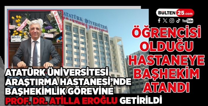 Önceki yönetime hizmetlerinden dolayı teşekkür eden Prof Dr. Atille Eroğlu hastanenin klinik ve akademik hizmet kalitesini daha da yükseltmeyi hedeflediklerini ifade etti. Eroğlu, “Hasta bakım standartlarımızı ileri bir seviyeye taşımak ve sağlık hizmetinde güçlü bir yapı oluşturmak için çalışacağız. Başhekimlik görevine atanma sürecimde şahsıma gösterdiği güvenden dolayı Atatürk Üniversitesi Rektörümüz Prof. Dr. Ahmet Hacımüftüoğlu’na özellikle teşekkür ediyorum. Üniversitemizin bilimsel ve klinik vizyonuna katkıda bulunma fırsatı verdiği için kendisine minnettarım” dedi.