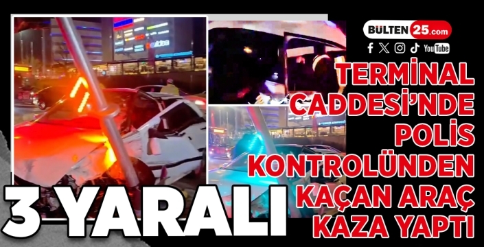 Erzurum’un Yakutiye ilçesinde polis kontrol noktasından kaçan bir otomobil, Terminal Caddesi yakınlarında kavşakta başka bir araçla çarpıştıktan sonra aydınlatma direğine vurarak durabildi. Çarpmanın etkisiyle hurdaya dönen araçta ve çarpılan otomobilde bulunan toplam 3 kişi yaralandı.