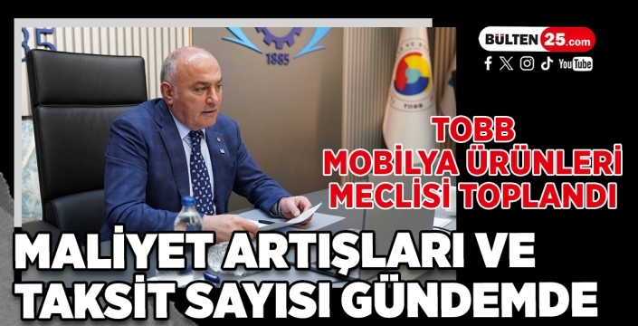 BÜLTEN25 / ERZURUM Türkiye Odalar ve Borsalar Birliği (TOBB) Türkiye Mobilya Ürünleri Meclisi, TOBB Yönetim Kurulu Üyesi Saim Özakalın’ın katılımı ve Meclis Başkanı Ercan Ata’nın başkanlığında video konferans yöntemiyle toplandı. Toplantıda sektörün temel sorunları ve 2026’ya yönelik beklentiler ele alındı.