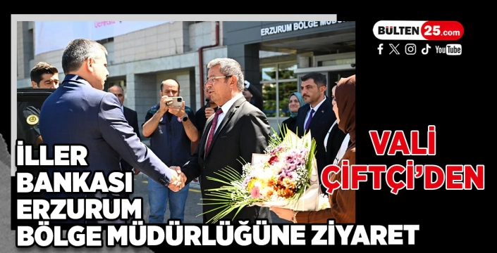 Erzurum Valisi Mustafa Çiftçi, İller Bankası A.Ş. Erzurum Bölge Müdürlüğünü ziyaret ederek, Bölge Müdürü Muzaffer Akgüner’den kurumun çalışmaları hakkında brifing aldı.
