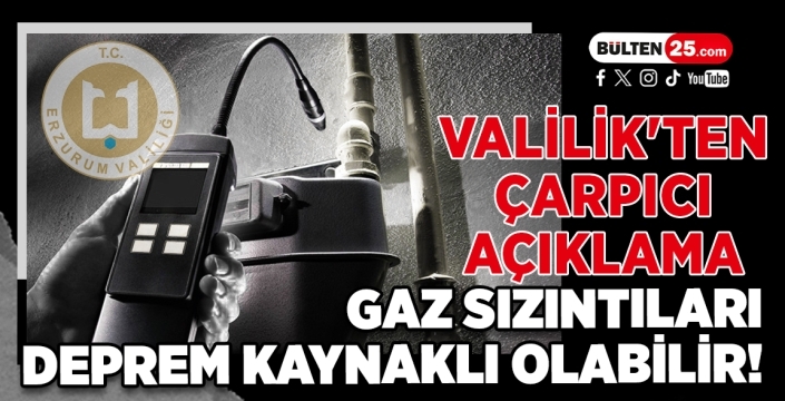 Erzurum kent merkezinin yanı sıra Aziziye İlçesi’nde 25 Kasım’dan bu yana yaşanan ‘gaz sızıntısı’ olaylarıyla ilgili Erzurum Valiliği’nden son derece çarpıcı bir açıklama yapıldı. Gaz sızıntısı nedeniyle Aziziye Belediyesi’ne ait termal tesis ve özel bir kaplıca hizmete kapatılırken, Aziziye Atatürk İlkokulu’nda da eğitime ara verildiği açıklandı. Valilik açıklamasında gaz sızıntılarına hafif şiddetteki sismik hareketlerin bu sızıntılara yol açabileceği vurgulandı.